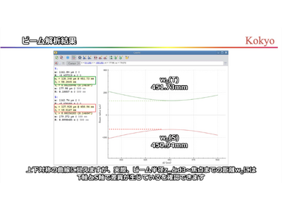 非点収差解析画面(例) - ビーム伝搬の可視化/非点収差の評価表示