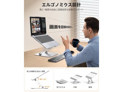 無段階調整で理想の姿勢へ|在宅ワーク・学習を快適にする安定設計スタンド