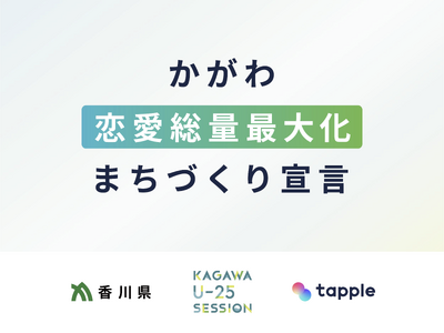 香川県 池田豊人 知事からのコメント本日、「かがわ恋愛総量最大化まちづくり宣言」を発出いたしました。2025年1月にタップルと連携協定を締結して以降、同社や「KAGAWA U-25 SESSION」メンバーと意見交換を重ねてきました。人口・婚姻数・出生数の減少は香川県にとって大きな課題ですが、若者が暮らしやすいまちを実現するためには、出会いがあり恋愛がしやすいまちづくりが重要であり、その先に課題解決の糸口があるとの考えに至りました。今後は、若い方たちの視点に立って、地域経済界の皆様や市町のご協力も得ながら、県全体で若者とともに、恋と賑わいにあふれるまちづくりを進めてまいります。
