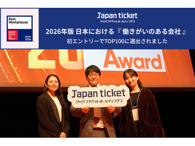 株式会社ジャパンチケットホールディングス(本社:東京都渋谷区、代表取締役:田中宏彰、以下HD)は、Great Place To Work(R) Institute Japanが発表した「2026年版 日本における『働きがいのある会社』ランキング」において、初エントリーでTOP100(中規模部門35位)に選出されました。