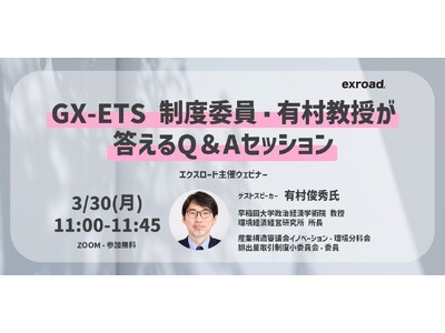 カーボンクレジット・排出量取引制度オールインワンデータベースを提供する株式会社exroad(エクスロード、本社:東京都港区、代表取締役:木村圭佑)は、「【GX-ETS】制度委員・有村教授が答えるQ&Aセッション」と題し、