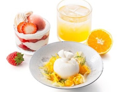 濃密な館山須藤牧場のブラータチーズに“はるひ”の爽快な甘みを合わせた一皿と、“はるひ”の良さを凝縮したノンアルコールカクテル。深い甘味の“紅ほっぺ”を、生クリームとローズをほんのり効かせたメレンゲで包んだパフェもお楽しみください。