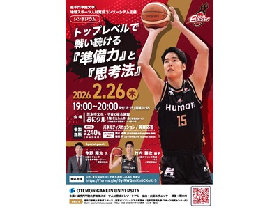 追手門学院大学(大阪府茨木市、学長:真銅正宏)の地域スポーツ人材育成コンソーシアムは、2026年2月26日(木)、B.LEAGUE B1所属「大阪エヴェッサ」のゼネラルマネージャー今野 翔太氏および所属選手の竹内 譲次氏を招き、茨木市文化・子育て複合施設「おにクル」でシンポジウム「トップレベルで戦い続ける『準備力』と『思考法』」を開催します。