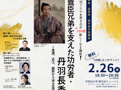 無料公開講座 「大河ドラマを見るのが100倍楽しくなる講座!豊臣兄弟を支えた功労者・丹羽長秀 ~美濃、近江、越前から辿る生涯~《岐阜県・滋賀県・福井県共催講座》」