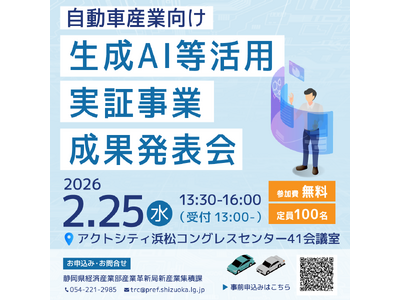 静岡県では、生成AI等のデジタル技術を次世代自動車の設計・開発・製造の現場で実証し、活用モデルを広く普及させることを目的に、実証事業を実施しています。