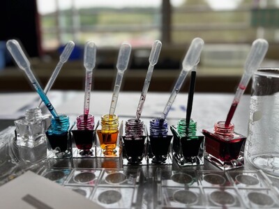 インクの色作りは、理科の知識を活用した調色の工程から始まり、パッケージやラベルのデザインを考える工程まで、多くの試行錯誤を重ねながら進められました。