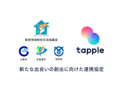 株式会社タップル(本社:東京都渋谷区、代表取締役社長:平松繁和)は、運営するマッチングアプリ「タップル」において、結婚を希望する男女の新たな出会いを創出するため、恋愛・結婚意識の醸成を図り、マッチングアプリの理解や適切な利用の促進を図ることを目的に、石川県能登半島の3自治体(七尾市、中能登町、羽咋市)が連携して設立された能登地域移住交流協議会と「新たな出会いの創出に向けた連携協定」を締結いたしました。