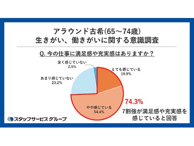 人材総合サービスを全国で展開する株式会社スタッフサービス・ホールディングス(本社:東京都千代田区、代表取締役社長:阪本耕治)は、65~74歳までのいわゆる「アラウンド古希」を対象に「アラウンド古希の生きがい、働きがいに関する意識調査」を実施しました。
