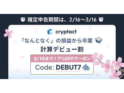 仮想通貨(暗号資産)の自動損益計算サービス「クリプタクト」を運営する株式会社pafin(共同代表取締役 アズムデ アミン/斎藤 岳、以下「当社」)は、今年初めて損益計算を行う投資家向けに、「計算デビュー割」キャンペーンを開始いたします。