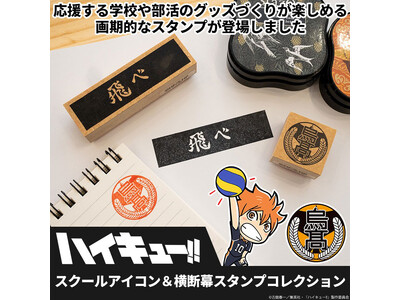 無地のノートや封筒、トートバッグ、ブックカバーetc、応援する学校のマークや横断幕を押して楽しめる、「ハイキュー!!」に登場する学校や部活のグッズが作れるスタンプが登場