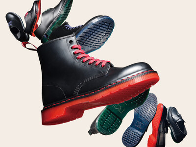 “THE COLOR SOLES”は、ドクターマーチンのブラックスムースレザーをアッパーに、レッド、ダークネイビー、ダークグリーンのカラーウェルトステッチと半透明のカラーソールで構築。これまでに無い大胆なカラーアレンジを加えている。ブランドの真骨頂である耐久性はもちろん、普遍的なアイコンに3つのカラーソールで表現されたデザインは、ボーダレスなマインドと自己表現にフィット。自由で自分らしいスタイルを楽しませてくれる。