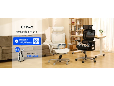Flexispot Japan株式会社(本社:埼玉県入間郡、代表取締役:斉冰白、以下「FlexiSpot」)は、2026年2月14日(土)午前10時より、オフィスチェアの新モデル「C7 Pro 2」を発売いたします。発売を記念し、20%OFFの特別価格での販売に加え、先着10名様にキャリーケースL3をプレゼントするキャンペーンを実施いたします。