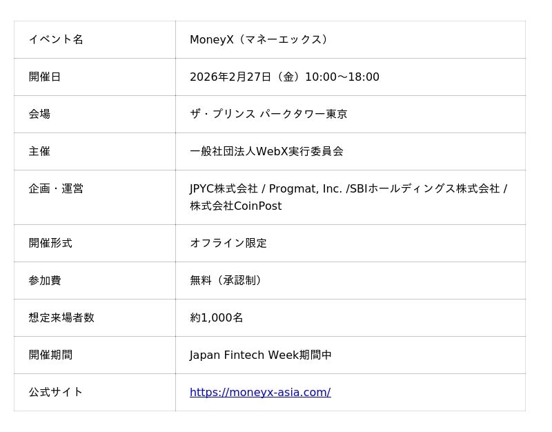 詳細:ステーブルコインの正式認可を背景に、通貨の新時代をテーマとした金融カンファレンス「MoneyX(マネーエックス)」開催決定