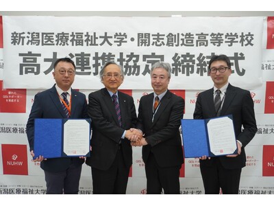 NSGグループの新潟医療福祉大学(以下、本学)は、2月6日(金)、高校生に対して医療系資格・職業についての理解を深める機会を創出し、将来地域社会に貢献する人材を発掘・育成することを目的に、開志創造高等学校と高大連携協定を締結しました。