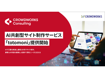 200名以上のエンジニアが在籍する、DXコンサル・受託開発・エンジニア派遣・SESを手がける株式会社クラウドワークス コンサルティング(本社:東京都港区 代表取締役:大類 光一 以下「CWC社」)は、対話の時間を生み出すAI活用で、顧客との認識齟齬を防ぎながら最短1か月のスピードを両立すると最短1か月のスピードを両立するAI時代の新しいWebサイト制作サービス「totomoni(トトモニ)」(以下、本サービス)を提供開始いたします。
