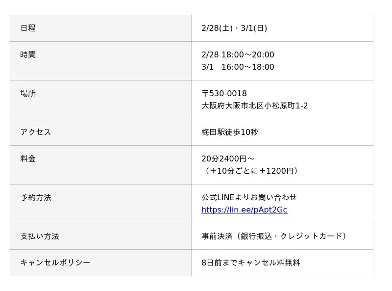 占い師養成CAMPの説明会と同時に、くるとん先生の対面鑑定も大阪梅田で行います。すでにご予約いただきました方、誠にありがとうございます。くるとん先生が大阪梅田で鑑定される貴重な機会になりますので、奮ってご参加ください。