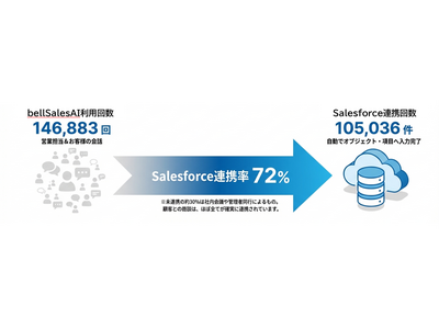 Salesforce入力エージェント「bellSalesAI(ベルセールスエーアイ)」の開発・販売を行うベルフェイス株式会社(本社:東京都港区、代表取締役:中島 一明、以下「ベルフェイス」)は、bellSalesAIユーザーのSalesforce自動入力率(※1)が月間で72%に達したことをお知らせいたします。