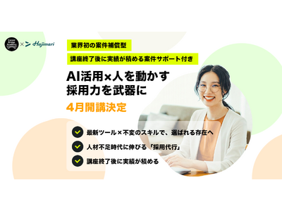 株式会社Hajimari(本社:東京都渋谷区、代表取締役:木村直人)は、人事専門コンサルタントを育成するキャリアブリッジアカデミー(以下:CBA)と共同で、案件紹介確約型の新講座「採用代行講座 ~ 生成AI × 採用マーケティング~ by CBA」を開講したことをお知らせいたします。