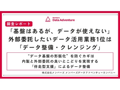 “データ基盤の形骸化”を防ぐカギは内製と外部委託の良いとこどりを実現する「伴走型支援」によるデータ整備DX現場支援で顧客と共に社会変革をリードする株式会社メンバーズ(本社:東京都中央区、代表取締役社長:高野 明彦、東証プライム:2130、以下「メンバーズ」)のデータ領域プロフェッショナル常駐サービスを展開する専門組織、メンバーズデータアドベンチャーカンパニー(カンパニー社長:白井 恵里、以下「データアドベンチャー」)は、データ活用に関与するビジネスパーソン301名に対して、データ活用に関する調査を行いました。その結果、外部委託先に依頼しているデータ活用業務1位は「データ基盤の構築・導入(60.1%)」でした。対して外部委託先に支援を期待する業務の1位は「データの整備・クレンジング(41.9%)」でした。このことから、多くの企業でデータウェアハウス(以下:DWH)等のデータ基盤の構築は外部委託を活用し進んでいるものの、データの品質管理には手が回っておらず、外部委託のニーズが高いことがわかりました。調査背景日本企業のDXが加速する中、独立行政法人情報処理推進機構(IPA)によると、DXの成果が出ている企業の70%以上がデータを利活用しており、DXの成果創出においてデータの利活用が重要な役割を果たしていることが推察されます(※1)。一方で、データアドベンチャーには、運用体制の構築やデータ品質の向上といった、実務フェーズにおける課題解決が追い付いていないという相談が多く寄せられています。以上のことから、本調査は、データ活用を推進している企業が本当に必要としている支援の形を明らかにすることを目的に実施しました。調査結果(1)サマリー- データ活用業務ごとの外部委託率1位は「基盤構築・システム導入」(ほとんど外部委託:15.9%、外部委託内製併用:44.2%、合計:60.1%)- 外部委託先に期待するデータ活用業務1位は「データ整備・クレンジング(41.9%)」- データ基盤構築は外部委託を活用しある程度進んでいると推測されるが、運用フェーズにおいてキーとなるデータ整備は外部委託ニーズが高く、手が回っていない状況にあると伺える。これがデータ活用のボトルネックとなっている可能性が考えられる(2)詳細- データ活用業務ごとの外部委託、内製、併用比率を見ると、「基盤構築・システム導入」は最も外部委託・併用率が高く(ほとんど外部委託:15.9%、外部委託内製併用:44.2%、合計:60.1%)、内製率は最も低かった(28.9%)- 「データの整備・クレンジング」の方が併用・内製率が高く(外部委託内製併用:35.5%、内製:49.2%、合計:84.7%)、外部委託(5.6%)は「基盤構築・システム導入」の次に高いものの10%以上の開きがある- 現場が外部委託先に求める業務は「データの整備・クレンジング」が最多(41.9%)となっており、現在最も外部委託率の高い「基盤構築(34.6%)」を上回っている- データ活用業務ごとの内製理由を見ると、「セキュリティ・情報機密上、外に出せないため」と「(社員であれば)社内事情に精通しているため」が上位であった。「データの整備・クレンジング」では特にこの2点の割合が高く、外部委託のハードルになっていると考えられる- 以上のことから、データ基盤の構築は専門人材への外部委託が進んでいるものの、実際の運用フェーズで使用するデータの整備・クレンジングが十分にできておらず、これを進めるための外部委託ニーズがあることがわかる。しかし、自社社員と比較すると外部委託先は社内情報へ精通していない場合が多い。また、外部委託先にデータを連携し加工を依頼するのはセキュリティの面でも懸念があるため、外部委託したくてもできていない状況が発生していると考えられる株式会社メンバーズ メンバーズデータアドベンチャーカンパニー カンパニー社長 白井 恵里よりコメント「データ基盤の形骸化」を防ぐには、現場理解と専門性の両立が不可欠今回の調査で、データ基盤という「箱」への投資は進んだものの、中身の整備が追いつかず、AIや分析に活用できない「データ基盤の形骸化」が起こっているという現状が浮き彫りになりました。データ整備やクレンジングは非常に膨大かつ泥臭い作業です。しかし、これを外部委託しようとしても、「自社のビジネス理解(ドメイン知識)」の欠如や、「セキュリティ上の懸念」が大きな壁となり、外部委託したくてもできないというジレンマが発生しています。このことから、企業がデータ活用をより一層加速させるためには、基盤構築やシステム導入までを行う「納品型」の外部委託だけではなく、専門人材が現場の一員として深く入り込む「伴走型支援」も取り入れることが重要な選択肢になると考えています。各データ領域の専門人材が現場に入ることで機密性を担保しつつ、ビジネスを理解したうえでデータ整備を推進することで、混沌としたデータをビジネス価値を生む資産へと変えることができます。※1:独立行政法人 情報処理推進機構 (IPA)「DX動向2025」図表2-2よ
