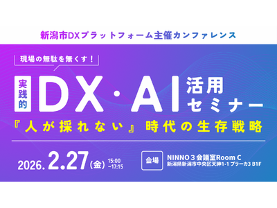 新潟市と新潟IPC財団が連携して運営するDXプラットフォーム(※)では、中小企業のDX推進をテーマにしたセミナーを開催いたします。