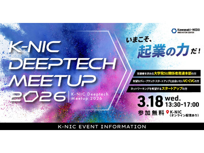 株式会社ツクリエ(本社:東京都千代田区 代表取締役:鈴木英樹 以下、ツクリエ)が川崎市から運営受託するKawasaki-NEDO Innovation Center(所在地:神奈川県川崎市 以下、K-NIC)は、2026年3月18日(水)に、ディープテック・スタートアップに特化したミートアップイベントを開催します。