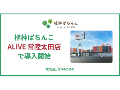株式会社 地球のために(本社:大阪府大阪市、代表取締役:内藤 勝好)が提供するパチンコホール向けCSR事業「植林ぱちんこ」が、この度リニューアルオープンしたALIVE常陸太田店(運営会社:平成興業)で導入されました。