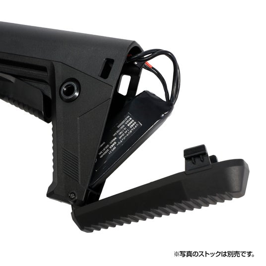 内部にバッテリー収納可能なストックと組み合わせることで、バッファーチューブ後部からバッテリー交換が可能になります。(対応ストック:KRYTAC MK3 TRIDENT Stock / BLK ストック KA069-00U)