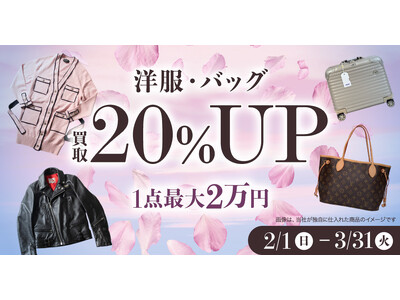 株式会社スタンディングポイント(本社:東京都目黒区、代表取締役:若森 寛)が運営するファッションリユース事業「エコスタイル(ECOSTYLE)」は、2026年2月1日より、洋服・バッグを対象とした「買取20%アップキャンペーン」を開始しました。春に向けた衣替えや整理需要が高まる時期に合わせ、1点あたり最大2万円の増額により、より納得感のある買取体験を提供します。
