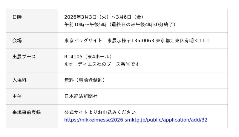 展示ブースでは、オーディーエス社のNFCリーダー/ライター搭載タブレットとあわせて、行政機関や民間企業の皆さまにご活用いただける本人確認の機能や手法をご紹介し、各種業務の高度化・効率化を多角的に支援いたします。ご来場の際は、ぜひお立ち寄りください。
