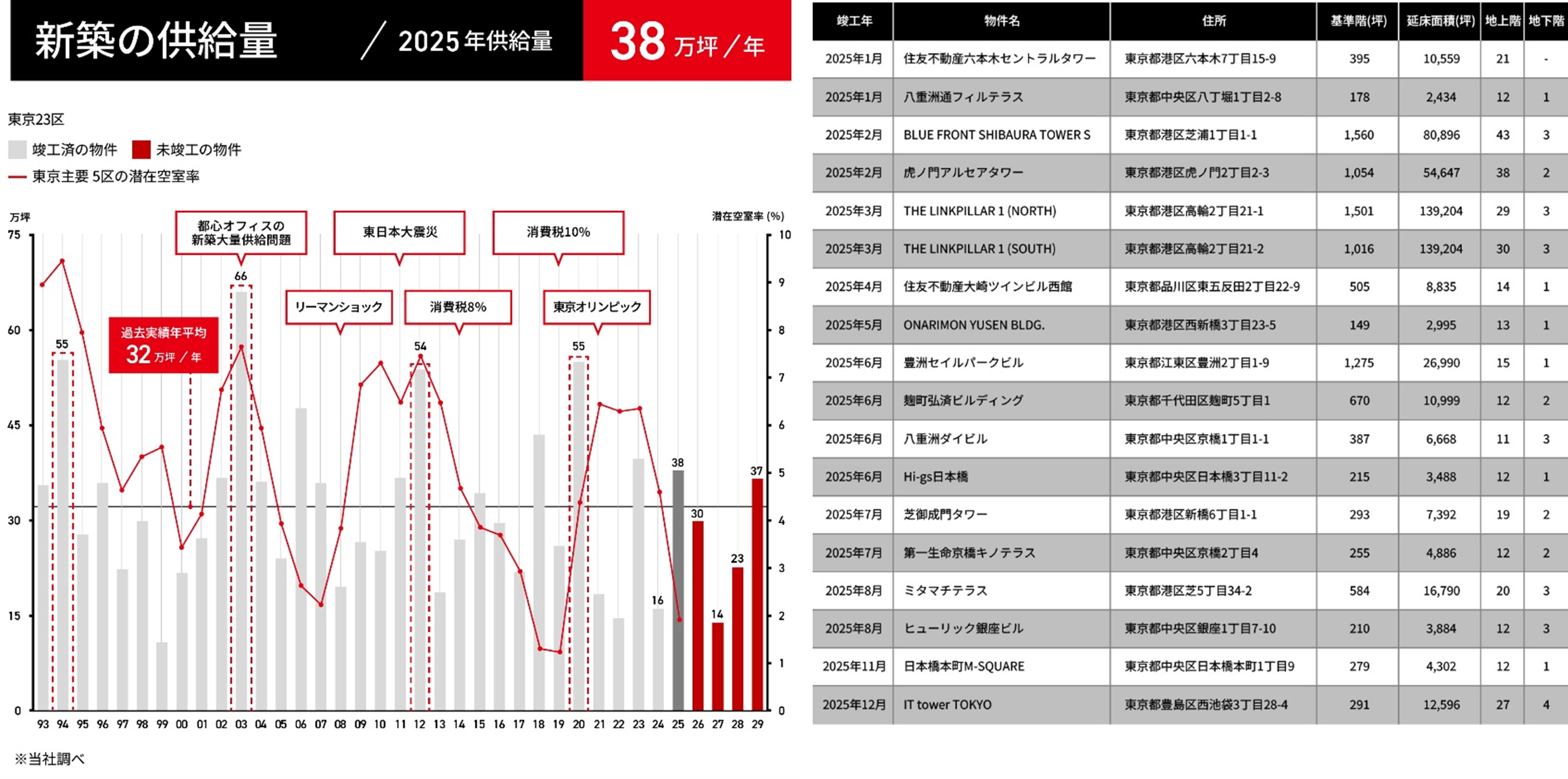 【新築の供給量と空室率、開発状況】