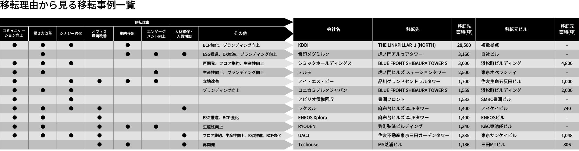 ・移転傾向については、日経不動産マーケット情報を基に当社にて独自調査を行い作成しています。