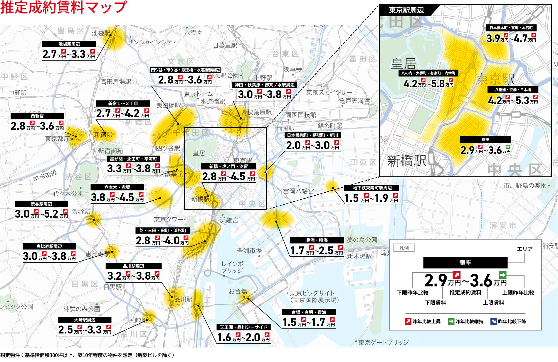 ・東京主要5区、7区:千代田区、中央区、港区、新宿区、渋谷区+品川区、江東区