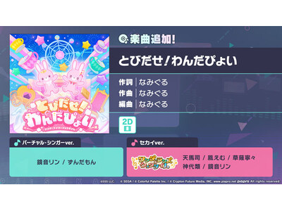 株式会社セガ(本社:東京都品川区、代表取締役 社長執行役員COO:内海州史)と株式会社Colorful Palette(本社:東京都渋谷区、代表取締役社長:近藤裕一郎)は、iOS/Android向けリズム&アドベンチャー『プロジェクトセカイ カラフルステージ! feat. 初音ミク(以下、プロジェクトセカイ)』について、2026年2月19日(木)より、新たになみぐるさんの書き下ろし楽曲「とびだせ!わんだぴょい」をリズムゲーム楽曲に追加いたしました。