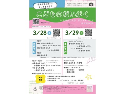 島根県立大学松江キャンパスでは、「けんだいの学び」を地域の子どもたちに体験してもらうため、「こどものだいがく」を毎年開催しています。