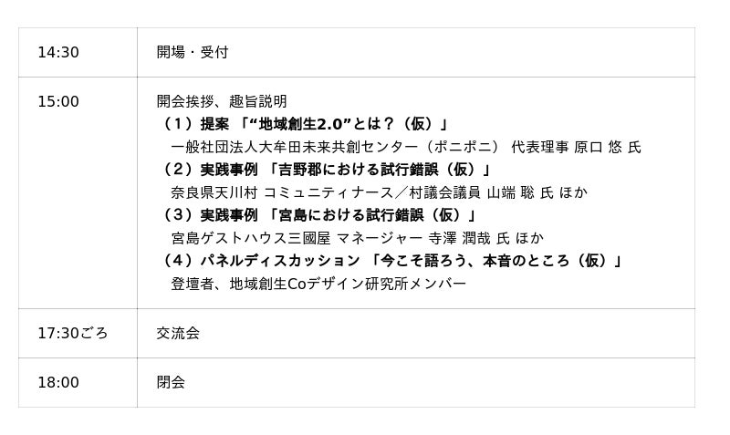 ※当日、「地域創生2.0(仮)」についてまとめたコンセプトブックをお持ち帰りいただけます。