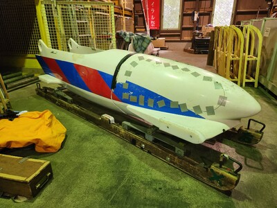 かつて氷上を時速120kmで疾走していた機体。