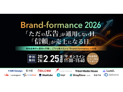 【2026年2月25日(水)開催】AI広告の氾濫で「ただの広告」が機能しない中、短期獲得とブランド構築を両立する新概念「ブランフォーマンス」を提言。LTV最大化の施策を13社が語るカンファレンス。