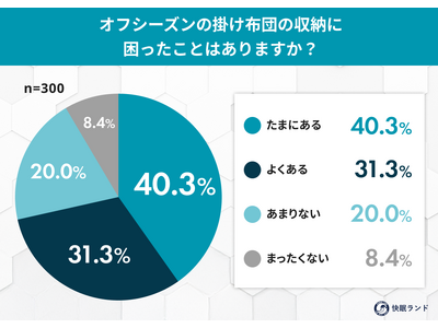 ムーンムーン株式会社は、全国の20~60代の男女300名を対象に「掛け布団の収納に関する実態調査」を実施しました。その結果、