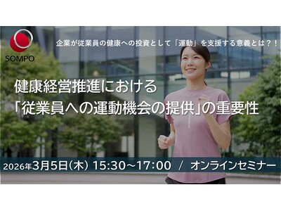 企業の多種多様なリスクマネジメント・コンサルティングサービスを提供するSOMPOリスクマネジメント株式会社は、『健康経営推進における「従業員への運動機会の提供」の重要性』をテーマに、無料のオンラインセミナーを開催いたします。