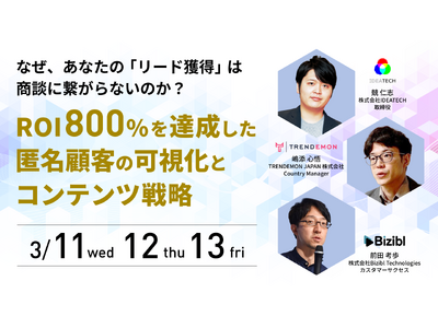 「なぜ、あなたの『リード獲得』は商談に繋がらないのか?~ROI 800%を達成した匿名顧客の可視化とコンテンツ戦略」を、2026年3月11日(水)から3月13日(金)までの期間、Bizibl上にて開催いたします。