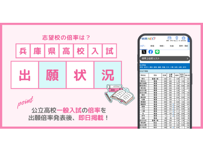 神戸新聞の電子版「神戸新聞NEXT」では、兵庫県の公立高校一般入試の出願状況を、2月25日(水)夕方頃より速報します。出願開始から志願変更、最終確定まで、複数回にわたって速報するため、志望校の状況確認や出願変更を考える際の判断材料として活用できます。