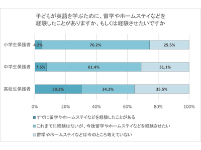 ■高校生保護者3割「子どもが留学・ホームステイ経験あり」 小学生保護者7割「今後、子どもに留学させたい」