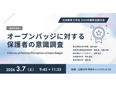 本発表は、東北学院大学大学院、内田洋行教育総合研究所、日本経済大学、およびインフォザインによる共同研究の成果です。デジタル証明書である「オープンバッジ」の普及が進む中、教育のステークホルダーである保護者がどのような意識を持っているかを調査・分析した、実証的な研究内容となっています。