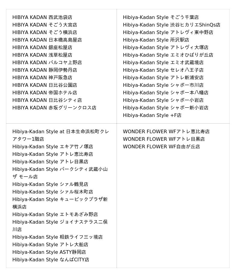 1872年創業、1950年に東京・日比谷公園本店の出店後、株式会社日比谷花壇を設立。現在、全国約190拠点で展開。ウエディング装花、店舗及びオンラインショップでの個人/法人向けフラワーギフト・カジュアルフラワーの販売、お葬式サービス、緑を通じた暮らしの景観プロデュース、フラワーグラフィックサービス、地域のまちづくり事業等を行っています。今後も花や緑の販売、装飾にとどまらず、暮らしの明日を彩り、豊かなものへと変えていく提案を続けていきます。