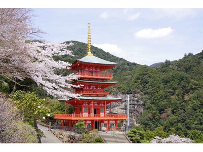 吉野熊野国立公園に位置するリゾートホテル「休暇村南紀勝浦」(所在地:和歌山県東牟婁郡那智勝浦町宇久井、支配人:川勝康弘)では、休暇村人気のオリジナルツアー「世界遺産ウォーク熊野古道大門坂」を通年実施しています。まもなく迎える桜のシーズン、3月下旬頃より桜越しに那智山青岸渡寺の三重塔と那智の滝をご覧いただくことができ、この時期しか見られない絶景をお楽しみいただけます。