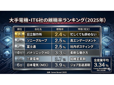 ■離職率ランキング(2025年、電機・IT大手6社)