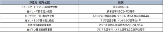 第103回外務省在外公館派遣員試験合格者 派遣先