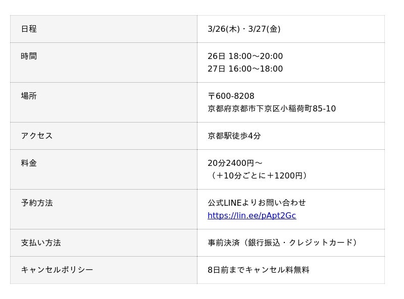 占い師養成CAMPの説明会と同時に、くるとん先生の対面鑑定も京都で行います。すでにご予約いただきました方、誠にありがとうございます。くるとん先生が京都で鑑定される貴重な機会になりますので、奮ってご参加ください。