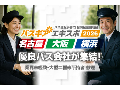 人材採用特化型代理店の株式会社アイデムコーポレーション(本社:東京都新宿区、代表取締役社長 椛山亮)は、バス運転手専門の合同企業説明会『バスギアエキスポ2026』を開催します。第一弾は、名古屋・大阪・横浜の3会場にて開催決定!