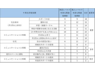 表1 施設・個人の両面で健康・ウェルビーイング指標と有意な関連を示したサ高住評価指標と重要度分類